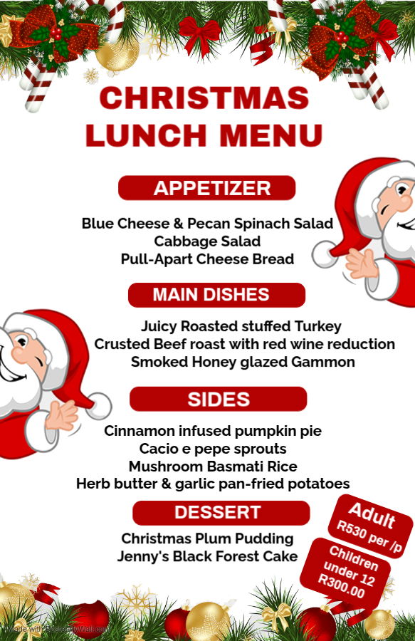 Share This OfferChristmas Day Lunch at Mangwa Valley Game Lodge 25 December 2025