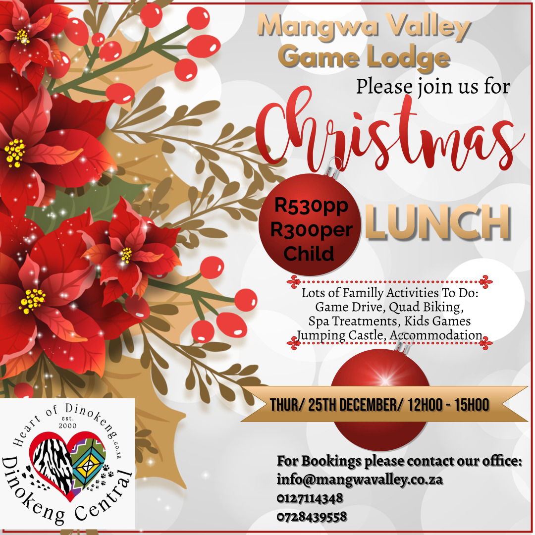 Share This OfferChristmas Day Lunch at Mangwa Valley Game Lodge 25 December 2025